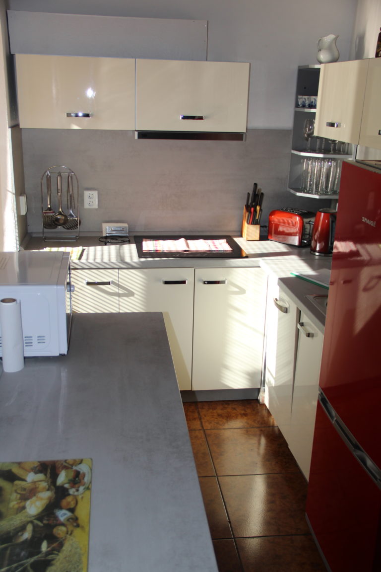 Dům je v přízemí z větší části bezbariérový. Kuchyňská linka je zcela nová, je vybavena nádobím, myčkou, dřezem s teplou vodou, , mikrovlnnou troubou, indukční deskou, remoskou, rychlovarnou konvicí, toustovačem, topinkovačem, mixerem a lednici s 2 šuplíky mrazáku.